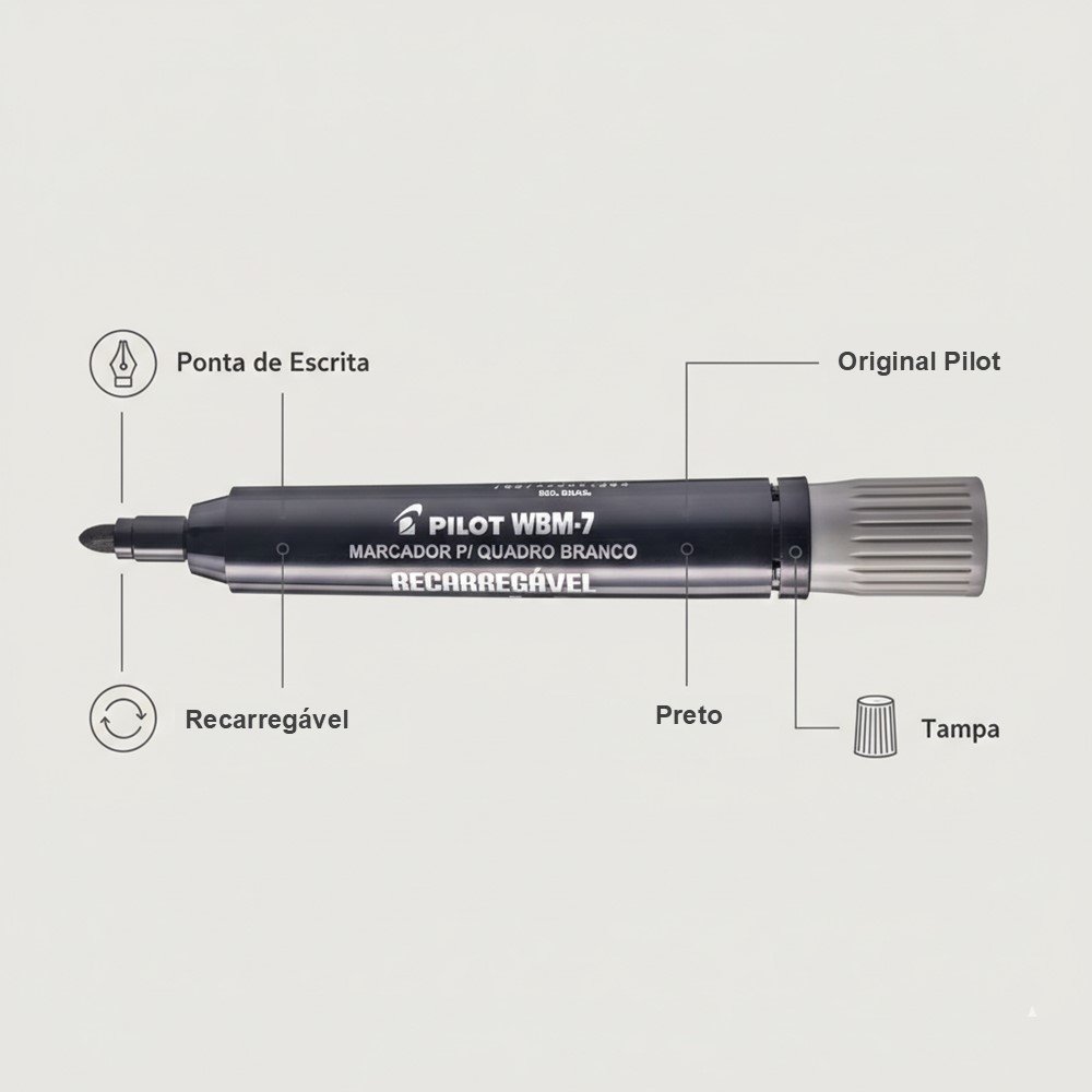 O Marcador para Quadro Branco Pilot WBM-7 é a escolha certa para quem precisa de escrita bem visível e praticidade no dia a dia - seja em sala de aula, reuniões, treinamentos ou no home office.