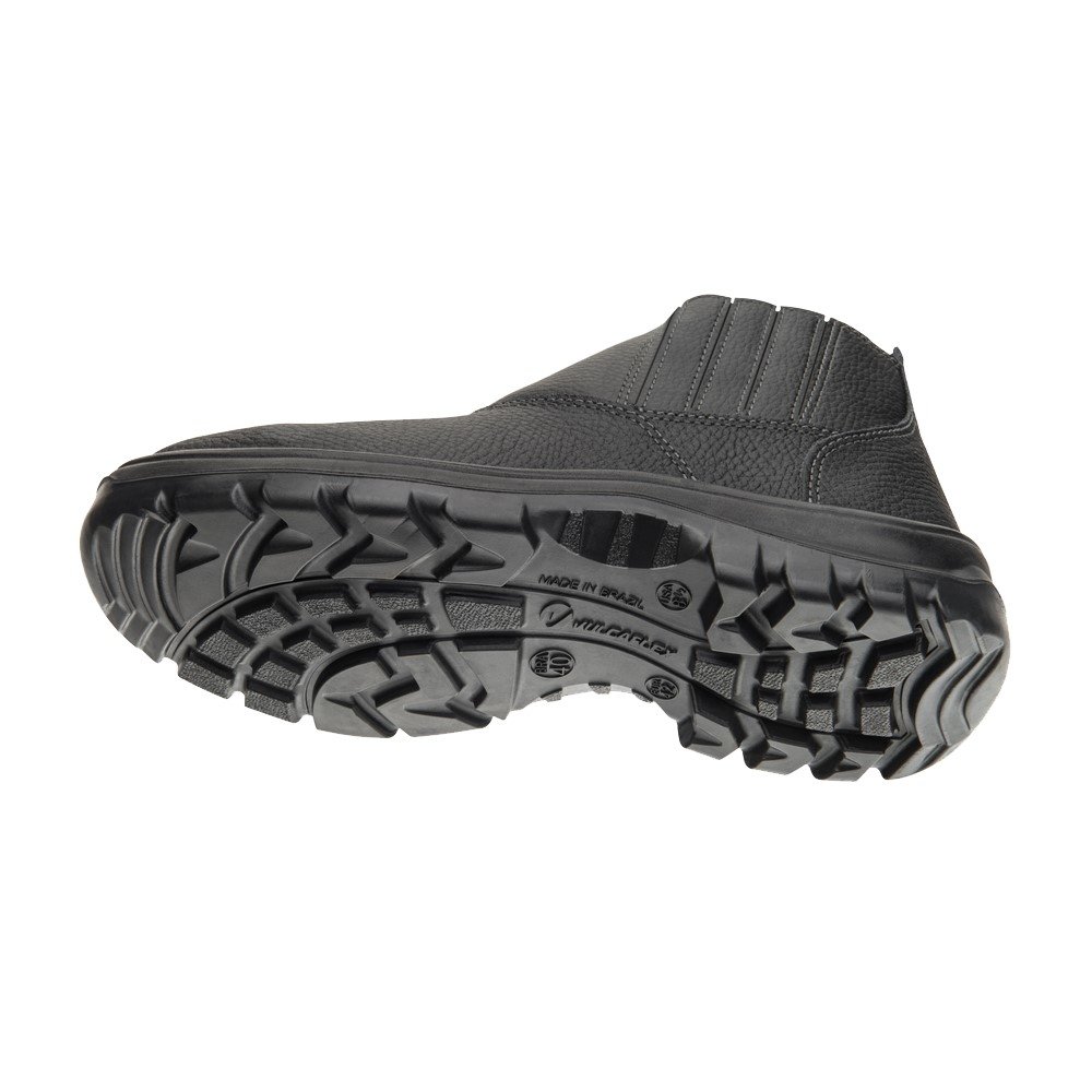 Informações Adicionais | Biqueira de plástico (polipropileno); Cabedal em couro relax; Dorso acolchoado; Forração interna; Palmilha antibacteriana; Solado PU Bidensidade; Fechamento em elástico nas laterais. |