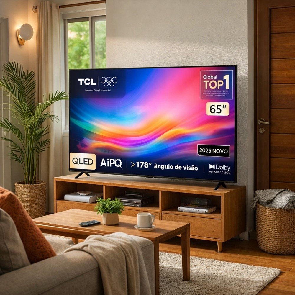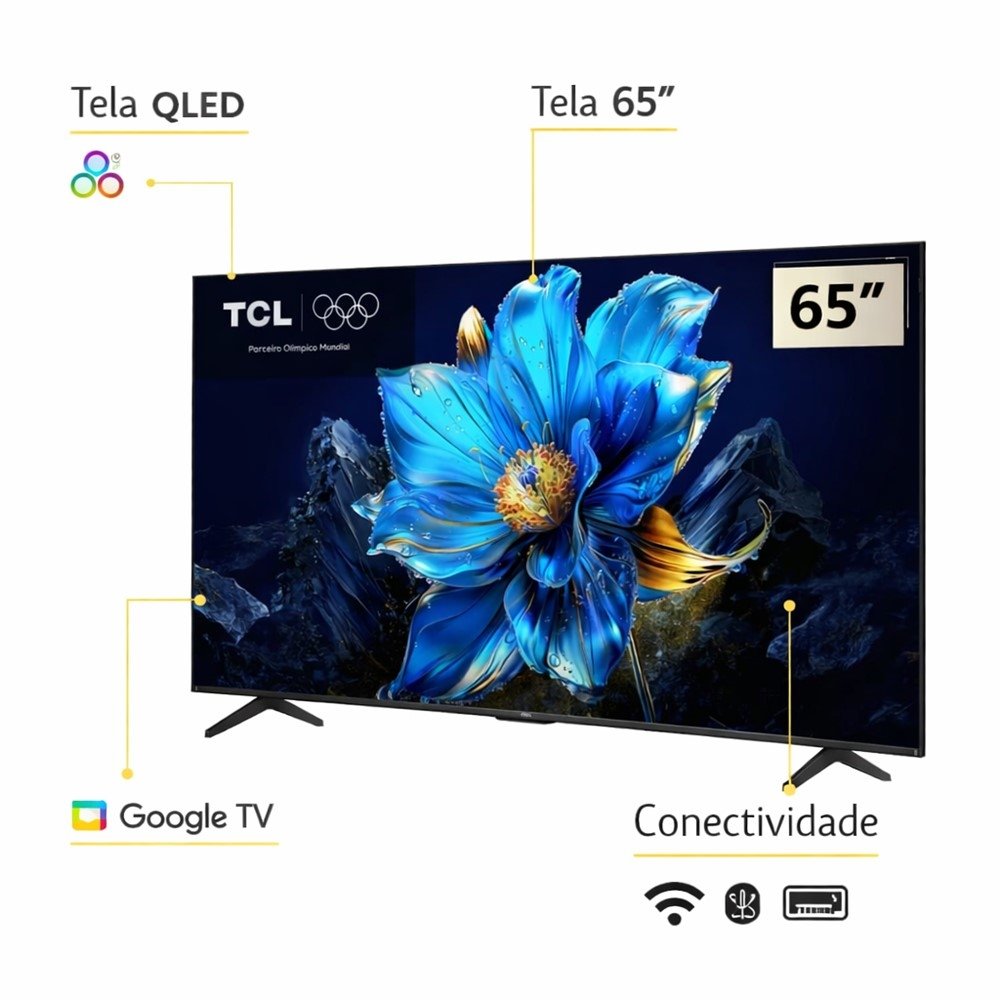Smart TV TCL 65" QLED 4K Google TV - Cores Vivas com Dolby Vision e Comando por Voz
