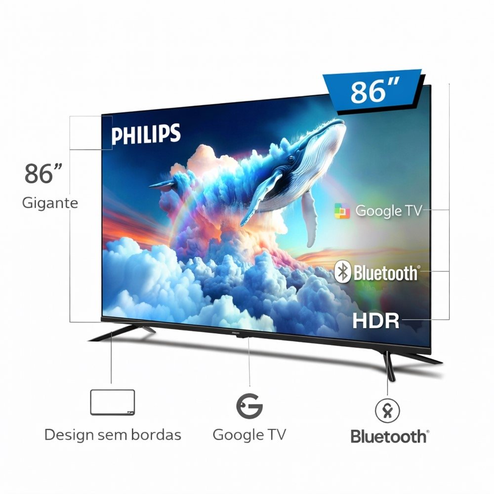 Smart TV Philips 86" 4K UHD Google TV PUG7019 - Tela Gigante sem Bordas com Comando de Voz