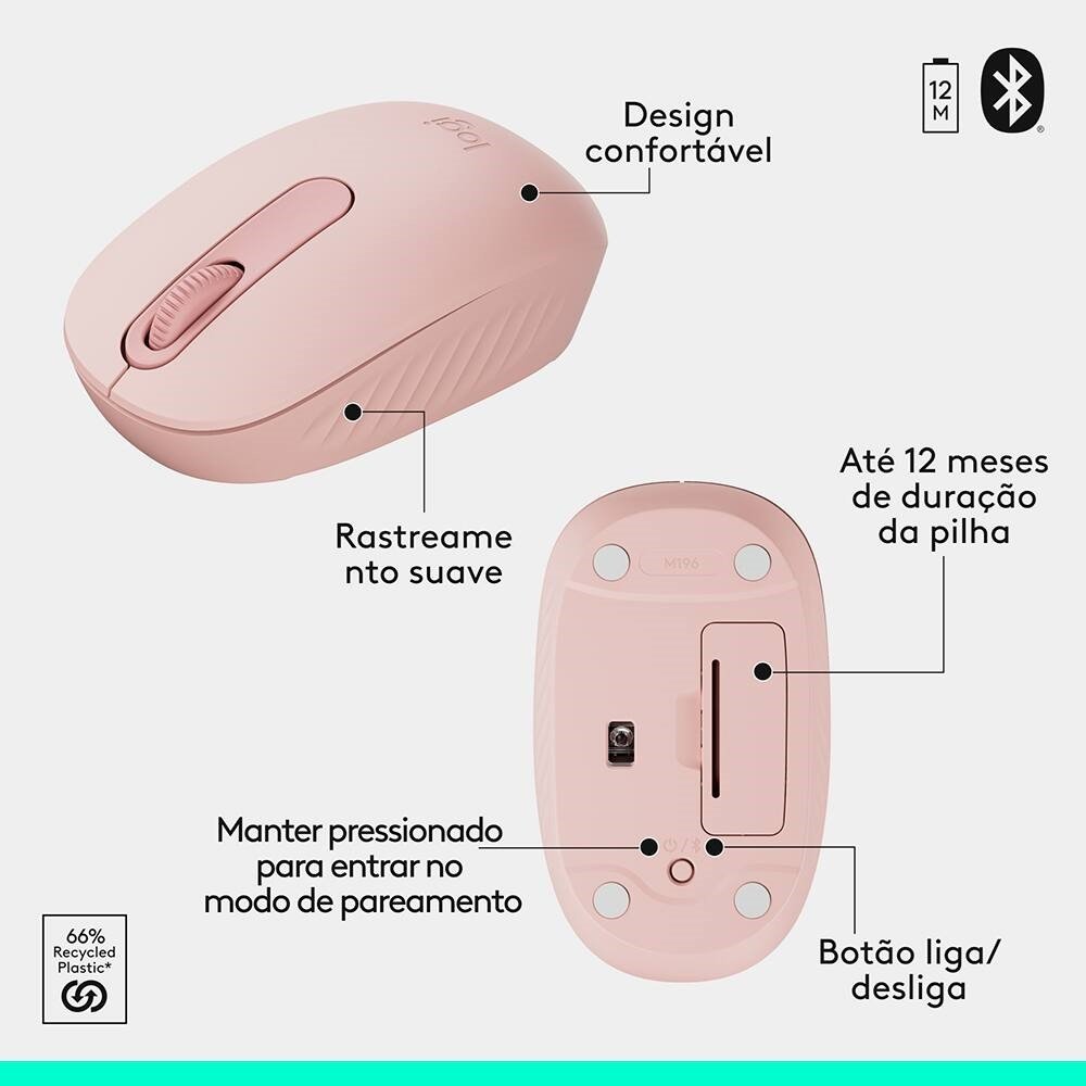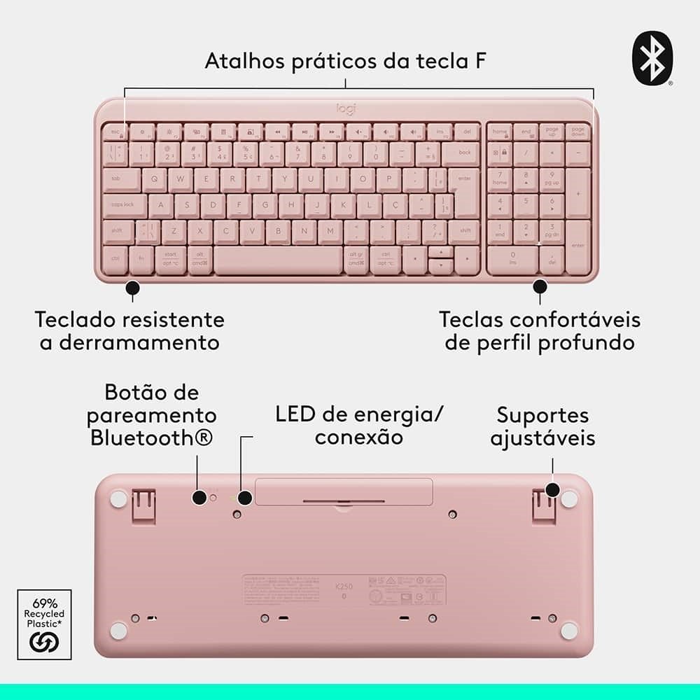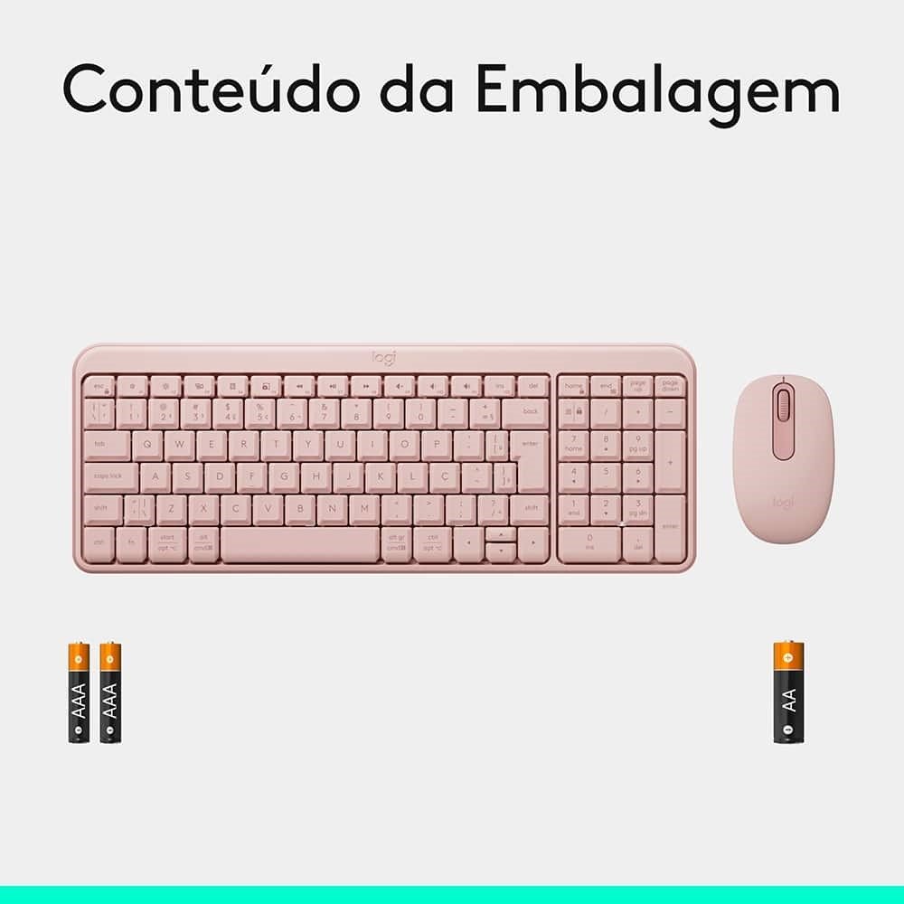 Teclado e Mouse Logitech Bluetooth MK250 com Teclado Numérico Rose English