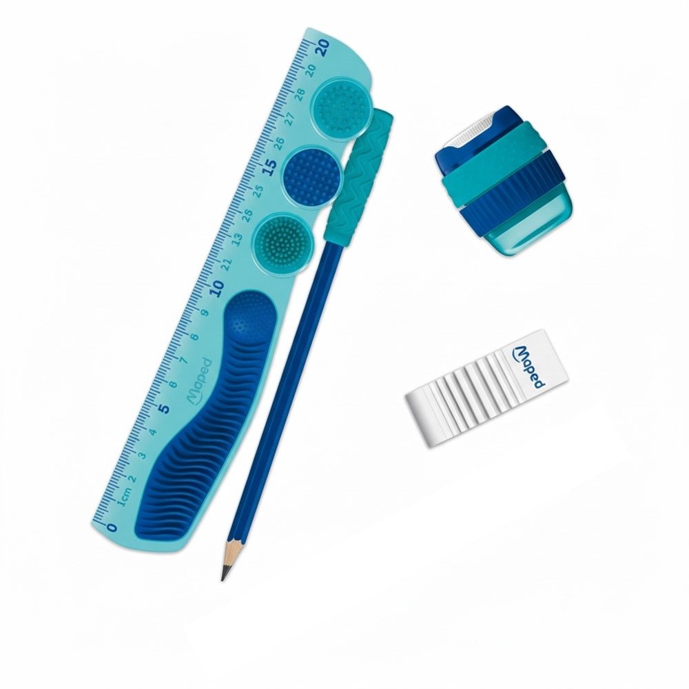 O Kit de Escrita Maped reúne os itens essenciais para a rotina escolar e de estudos: régua de 20 cm, lápis grafite, borracha e apontador. É a escolha certa para quem quer praticidade na mochila e mais agilidade no dia a dia, sem precisar comprar cada item separadamente.