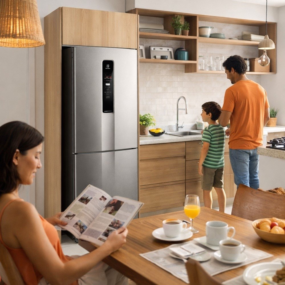 Com acabamento Inox Look, o visual é moderno e combina com cozinhas atuais, trazendo presença sem exagero. E com 490 litros de capacidade, você ganha espaço para organizar compras maiores, separar melhor os itens e manter tudo mais visível - ajudando a reduzir o "esquecido no fundo da geladeira" e a tomar decisões mais rápidas na hora de cozinhar.